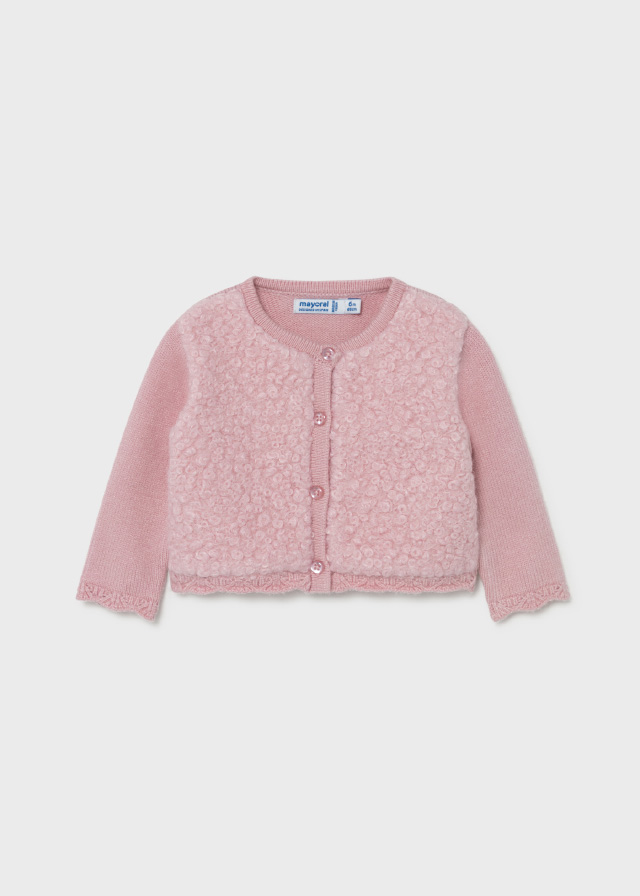 Rebeca de manga larga para bebé niña. Cuello redondo. Cierre con botones en la parte delantera. Tejido fluido para una máxima comodidad en el día a día.