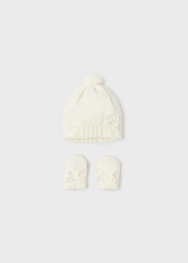 Prenda ECOFRIEND 100% algodón sostenible. Gorro para recién nacido de materiales cálidos y flexibles, que garantizan un ajuste perfecto a la cabeza y máxima comodidad para protegerle del frío. Par de guantes para recién nacido, ideal para proteger sus manos en los días de frío.