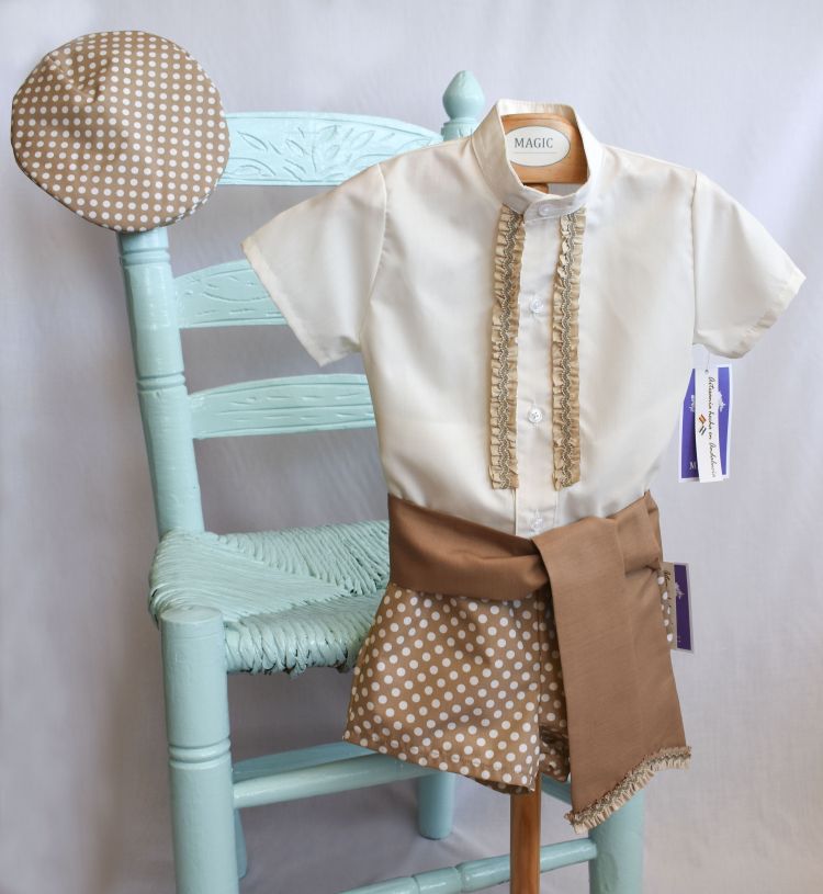 Precioso conjunto Flamenco para niños. Consta de Camisa, fajín, pantalón y gorra.