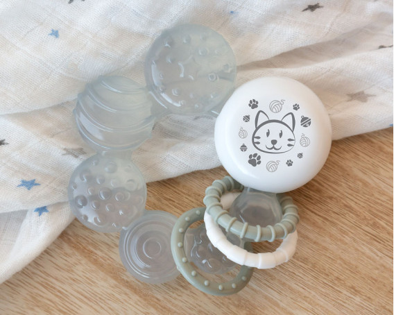 Para ello contamos con una completa colección de mordedores de frío, muy fáciles de sujetar, con diferentes colores y texturas para masajear las encías, y rellenos de agua esterilizada, que al enfriarse en el frigorífico, mejorarán los síntomas de la dentición de tu bebé. Disponible en todos los tonos de la colección Soft Nordic.