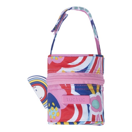 Práctico porta chupete, cremallera de amplia apertura y velcro en el asa para colgarlo fácilmente del carrito.